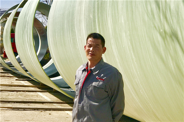 2017年6月,阿勒泰吉木乃縣揚(yáng)水工程一期的DN1600夾砂管道生產(chǎn)順利完工,期間共計(jì)生產(chǎn)和對(duì)接完成DN1600各種壓力管道12.7公里;2017年8月,夏興宏及團(tuán)隊(duì)又投入到揚(yáng)水二期的生產(chǎn),二期的管道數(shù)量達(dá)到27.7公里,截至2017年底,他們?cè)谟邢薜膹S區(qū)內(nèi)生產(chǎn)并屯滿了近5公里管道。