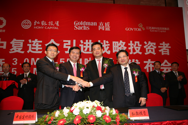 2010年3月30日上午,中國建材集團(tuán)與弘毅投資、高盛集團(tuán)、江蘇高科技投資集團(tuán)在江蘇省連云港市喜來登酒店舉行了隆重的戰(zhàn)略投資簽約儀式暨3兆瓦55米風(fēng)電葉片投產(chǎn)、5兆瓦葉片設(shè)計(jì)啟動發(fā)布會。
