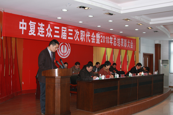 ?;⑥o舊歲,吉兔送福來(lái)。1月26日,中復(fù)連眾迎來(lái)兩件喜事,第三屆三次職工代表大會(huì)和2010年度總結(jié)表彰大會(huì)同時(shí)召開。來(lái)自各條戰(zhàn)線的職工代表、行管人員和受表彰人員歡聚一堂,回顧總結(jié)企業(yè)一年來(lái)的工作成績(jī),振奮精神,堅(jiān)定信念,喜迎2011。