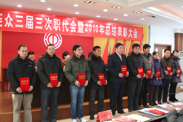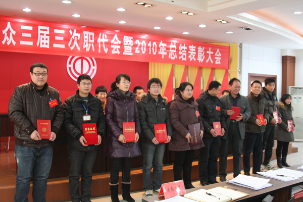 大會(huì)簽訂了《2011年度集體合同》、《勞動(dòng)安全衛(wèi)生專項(xiàng)合同》和《女職工特殊保護(hù)專項(xiàng)集體合同》。大會(huì)還對(duì)2010年度工作中涌現(xiàn)出的10個(gè)先進(jìn)集體、10位標(biāo)兵、104位先進(jìn)個(gè)人進(jìn)行了表彰,授予黃輝秀等十位同志第三屆“十佳員工”榮譽(yù)稱號(hào)。