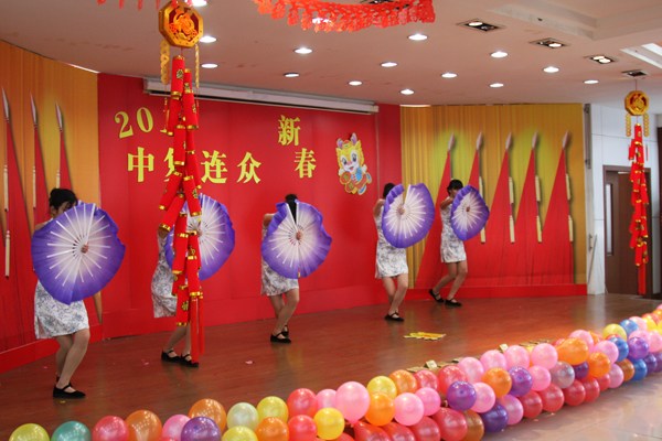 歡歌勁舞慶盛世,龍騰虎躍賀新春。1月17日,中復(fù)連眾五樓多功能廳內(nèi)張燈結(jié)彩、座無虛席,洋溢著喜慶祥和的節(jié)日氣氛。中復(fù)連眾2012年春節(jié)聯(lián)歡晚會在這里隆重舉行,公司領(lǐng)導(dǎo)與120名職工一起觀看演出,共同慶祝龍年新春佳節(jié)的到來。