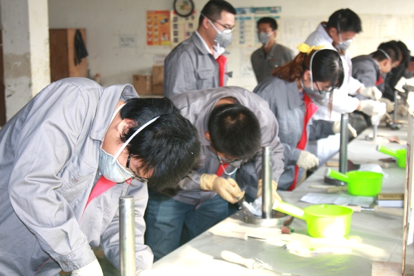 從模具的打磨,到材料的裁剪、樹脂的量取,都由參與考核者自己進行。管罐事業(yè)部參賽的科技人員實際操作技能較為熟練,各道工序進行的有條不紊,速度也較快,制作的成品都符合考核要求;葉片事業(yè)部的科技人員,有的對法蘭的制作工藝不是很了解,制作起來有一定難度,但他們憑借扎實的葉片制作工藝的功底,最終交出了一份圓滿的答卷。