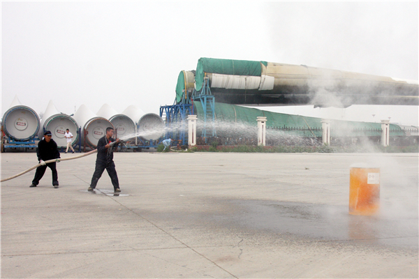 此次參加消防安全演練的主要是工作在葉片貨場上的人員,包括鋪層維修工段、機(jī)加工成品工段,共30人。如果有火災(zāi)發(fā)生,他們能夠第一時(shí)間發(fā)現(xiàn)火情。演練開始前,由安全員對(duì)參加演練的員工就火災(zāi)現(xiàn)場的應(yīng)急處置方案、滅火器的正確使用、滅火位置以及逃生等進(jìn)行詳細(xì)講解。