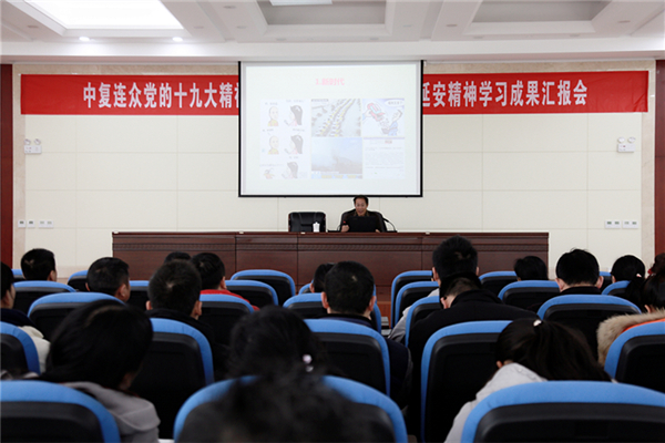 11月25日,中復(fù)連眾舉行黨的十九大精神專題輔導(dǎo)暨井岡山精神、延安精神學(xué)習(xí)成果匯報會,把學(xué)習(xí)十九大精神與弘揚革命精神結(jié)合起來,教育和引導(dǎo)黨員干部堅定理想信念,牢記宗旨使命。公司黨委書記、總經(jīng)理喬光輝,黨委副書記、紀委書記王彤兵,財務(wù)總監(jiān)張小平及在連黨員、積極分子、發(fā)展對象100余人參加會議。